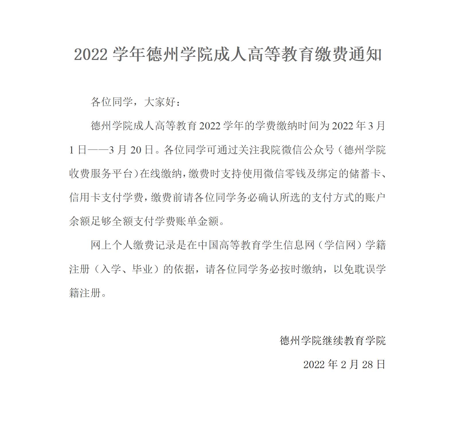 2022学年英国365集团成人高等教育缴费通知